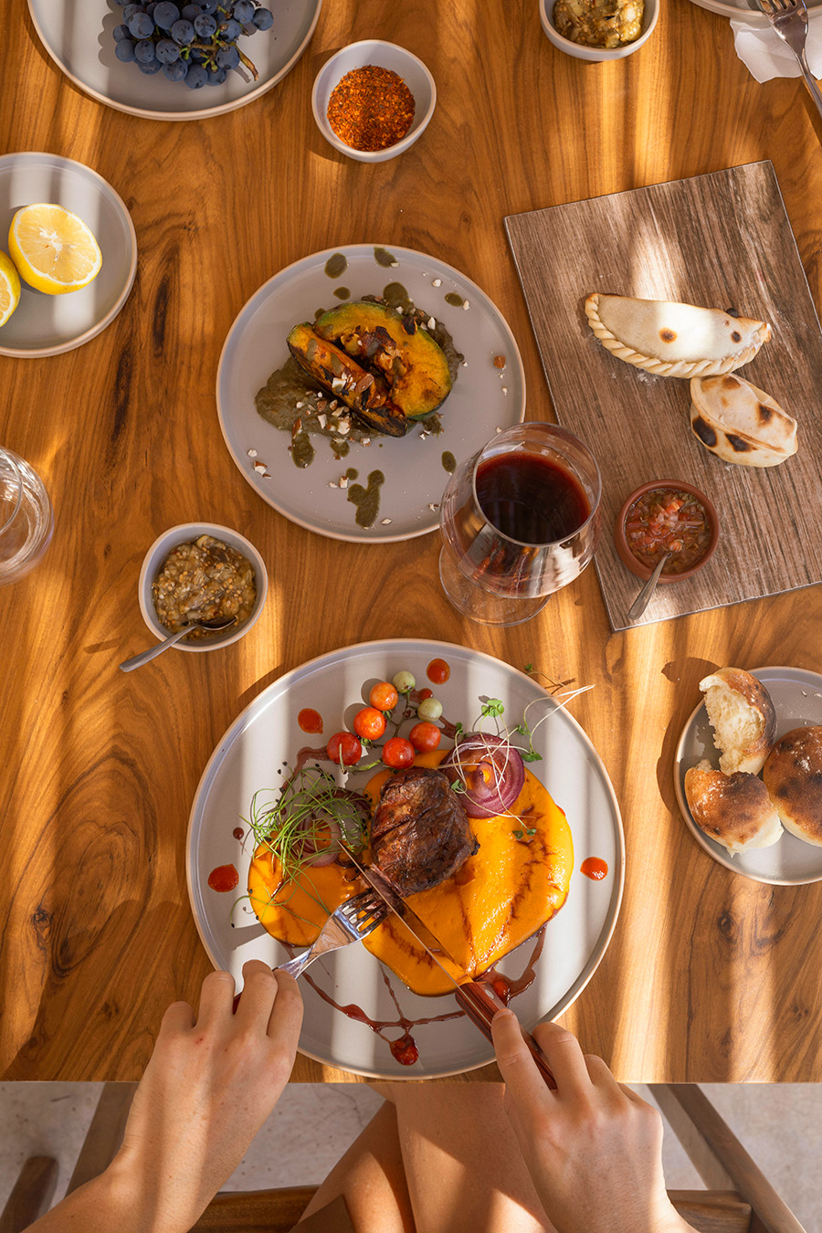 Carnes a las brasas o al asador y opciones vegetarianas acompañan la música que pasan los DJs.